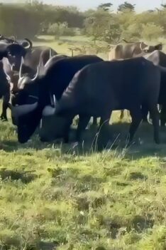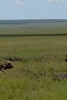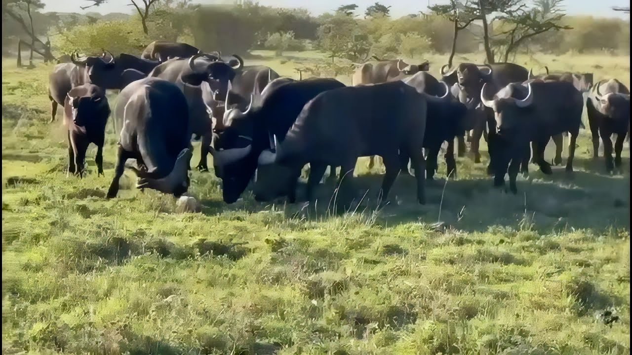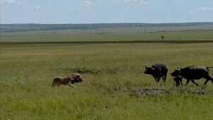Male lion wants the newborn calf but its not alone