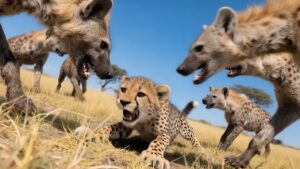 The Elephant herd fights with the hyena clan before they can take baby Binti as a midnight snack.
