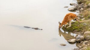 The proboscis monkeys find great joy in swimming and leaping through the water, exhibiting their affinity for aquatic activities. Tragically, one of the monkeys becomes a victim of the lurking crocodile, leaving the others in awe and disbelief.